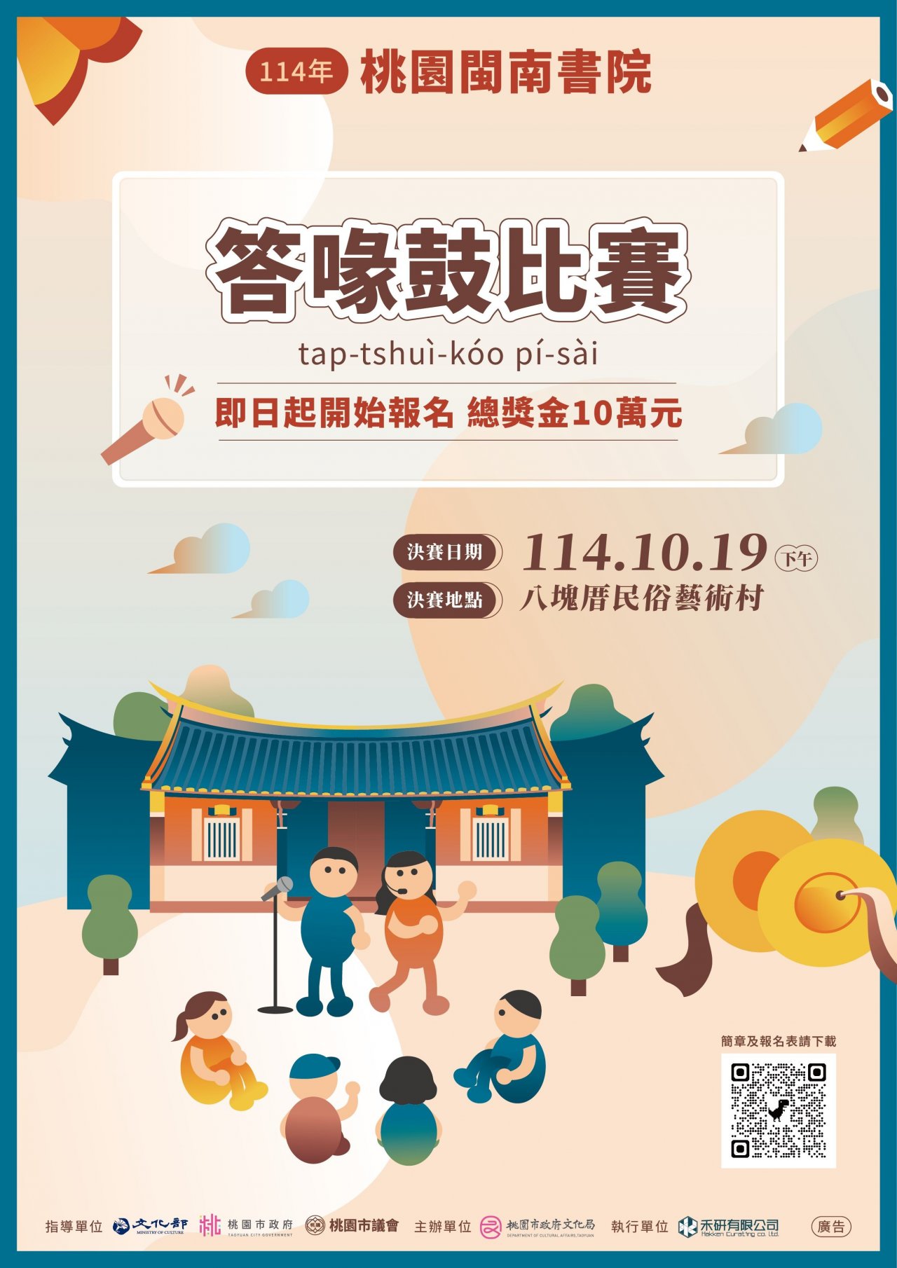 一、 旨揭書院課程為推動桃園閩南文化永續發展,營造多元文化共存願景,預計於 114 年 10 月辦理答喙鼓比賽。